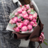 Нежный букет из пионовидных роз и эвкалипта в стильном оформлении.